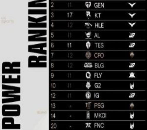 LOL戰隊全球實力榜更新:LCK包攬前四!AL第五,BLG排名不如CFO! 陷入瘋狂 2025-11-09 13:00:35 電競體育11月9報道 近日拳頭發布最新LOL戰隊全球實力榜,前四皆被LCK賽區隊伍占據,目前T1超越Gen.G位列頭名,KT上升7名排在第三,AL位列第五,TES位列第六,BLG位列第八! 上一篇: T1對陣KT的歷史交手數據:比賽場次53勝17負局數133勝71負! 下一篇: 返回列表