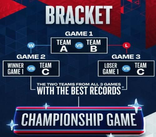 這3支球隊要進行3場循環賽,戰績最好的兩支球隊進入最后1場冠軍賽,每場比賽都是12分鐘。如果3支球隊都打成了1勝1負,那么就看凈勝分,選出兩隊進入冠軍賽。