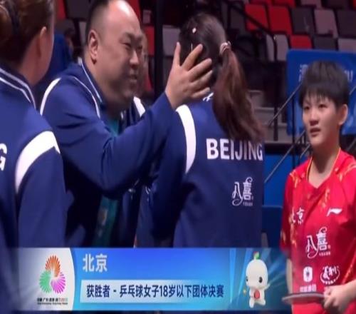 隨著祝啟慧在第四局以12比10擊敗姜依依,以3比1贏下第五場對決,北京U18女隊以總比分3比2獲勝,奪得了粵港澳全運會乒乓球項目的第一塊金牌。祝啟慧回到場邊,這時候北京U18女隊個個喜極而泣,北京隊的主教練也非常興奮,他揉揉了祝啟慧的頭。祝啟慧一臉平靜地看著還在激動落淚的姐姐們。沒錯,祝啟慧是北京U18女乒年齡最小的隊員,如今只有13歲,但跳級參賽的她是北京U18女隊的頭號選手。在這場擊敗山東U18女乒的比賽中,祝啟慧一人獨取2分,分別擊敗了國青隊的丁怡婕和姜依依。