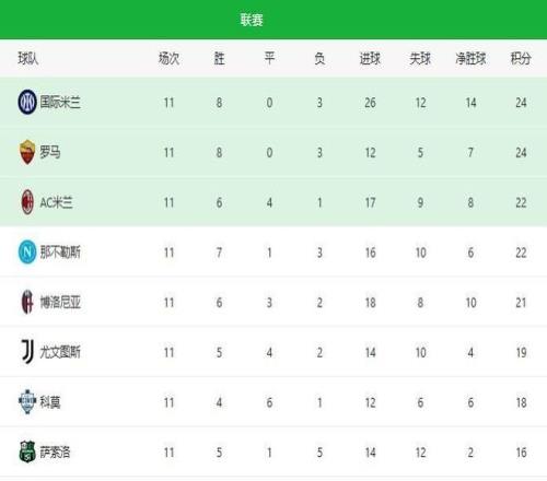本賽季意甲11輪戰罷,積分榜首的情景,讓許多老意甲球迷有種恍如隔世的錯覺。羅馬與國際米蘭同積24分并列第一,要知道,這是自2001/02那個群雄逐鹿的經典賽季之后,兩隊首次在意甲榜首位置上再度并駕齊驅。