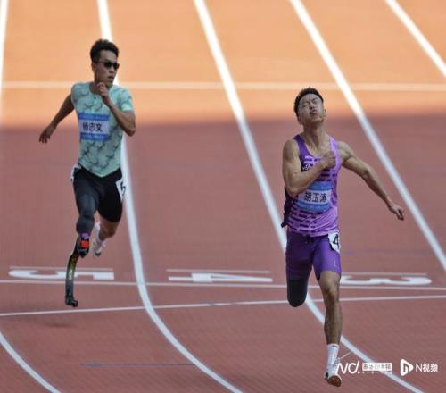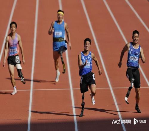 男子100米T64級決賽。